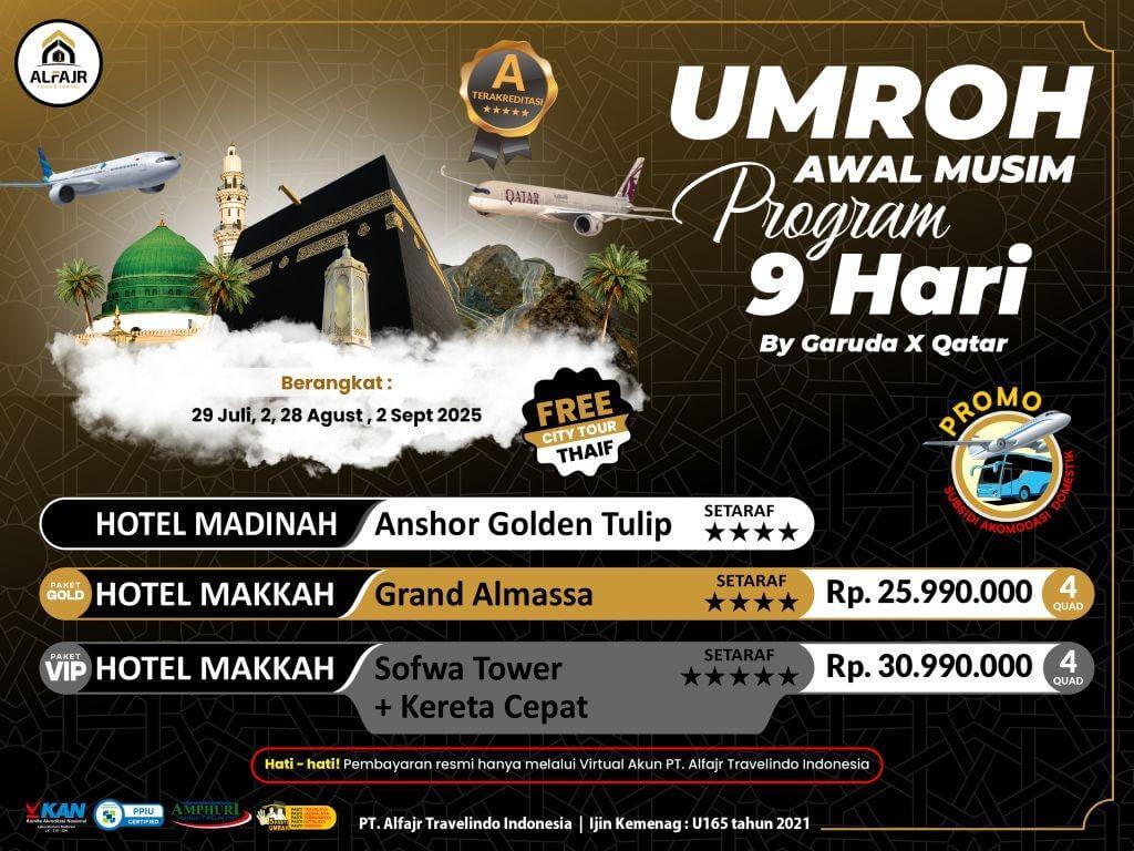 PAKET UMROH 28 AGUSTUS 2025 BY GARUDA INDONESIA X QATAR AIRWAYS 9H GOLD