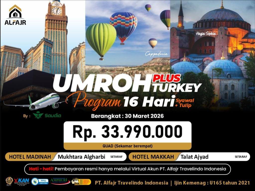 PAKET UMROH + TURKEY 30 MARET 2026 SV 16 HARI